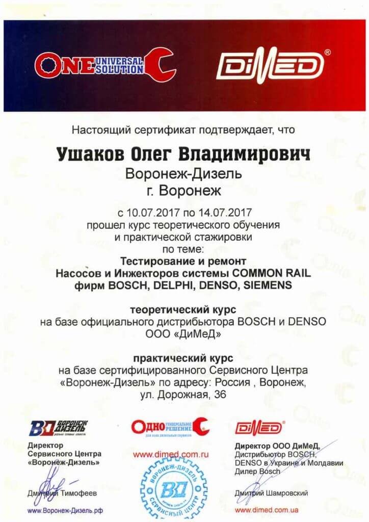 О прохождении курса теоретического обучения и практической стажировки по теме: Тестирование и ремонт насосов и инжекторов системы COMMON RAIL фирмы BOSCH, DELFI, DENSO, SIEMENS.